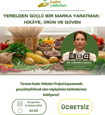 Tarımın Kadın Yıldızları Söyleşisinde bu ay; hikâye, ürün ve güven odağında tarımda markalaşmayı konuşuyoruz. SuperFresh ve Tabit iş birliğiyle gerçekleşecek söyleşide Dr. Yasemin Kuruca, yerelden doğan bir markayı büyütmenin temel dinamiklerini sahadan örneklerle aktaracak.